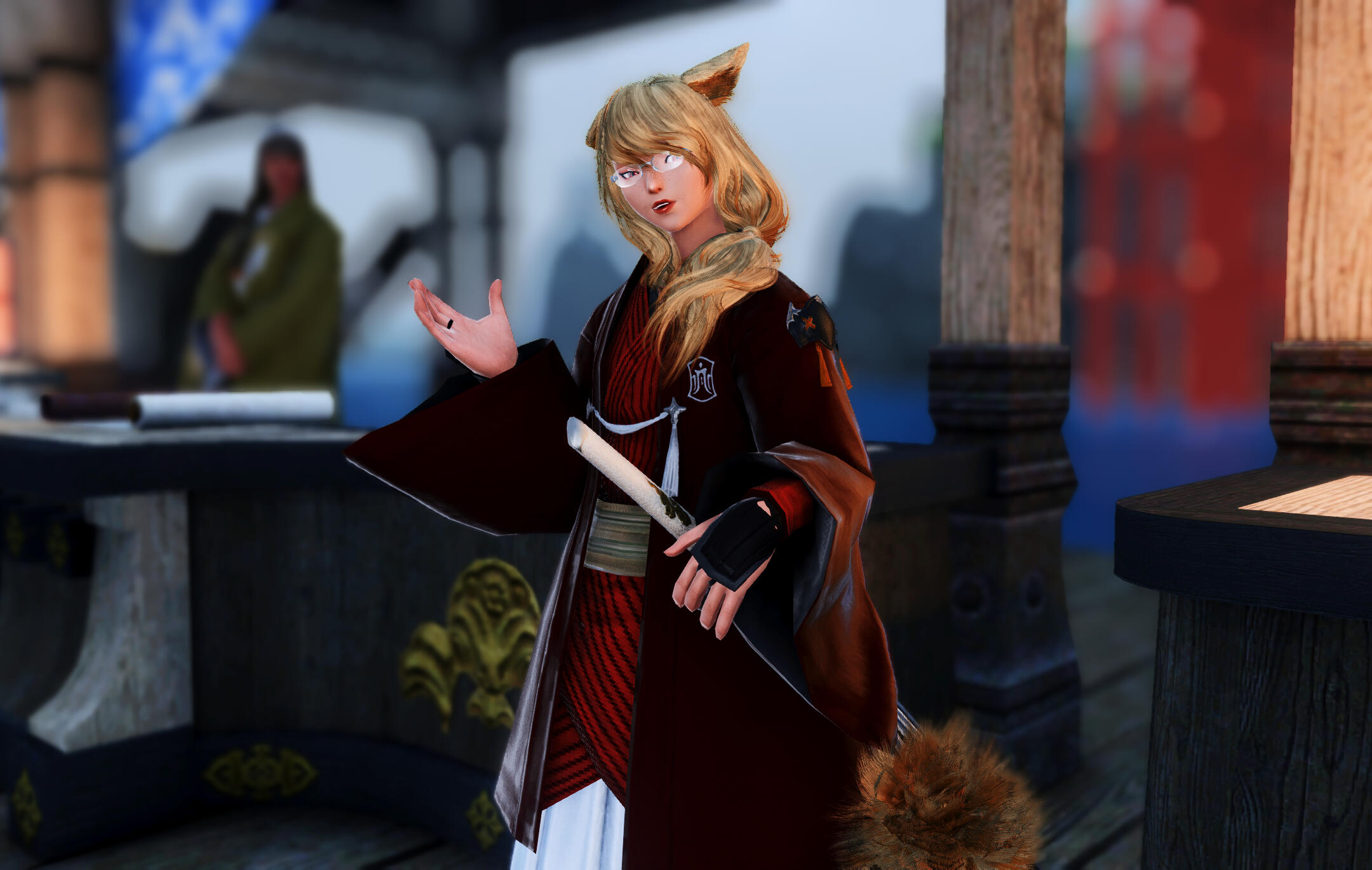 Upon arriving in Kugane in her teens, but to her kind a fresh adult, she would be greeted by the Sekiseigumi guards. Admiring their stoicism, the honor behind their robes, and the katanas they wielded in peace she would dream for several nights in the streets of Kugane, vivid dreams of becoming a samurai herself. She awoke on her third night to share a conversation with violet haired Ishgardian, a conversation that changed Kagari’s path and pushed her to go to the Sekiseigumi Barracks and request to join their ranks. While not of noble birth, she was denied becoming a samurai, however was offered a job cleaning up the barracks, mending their robes, and assisting in any form requested of her.
