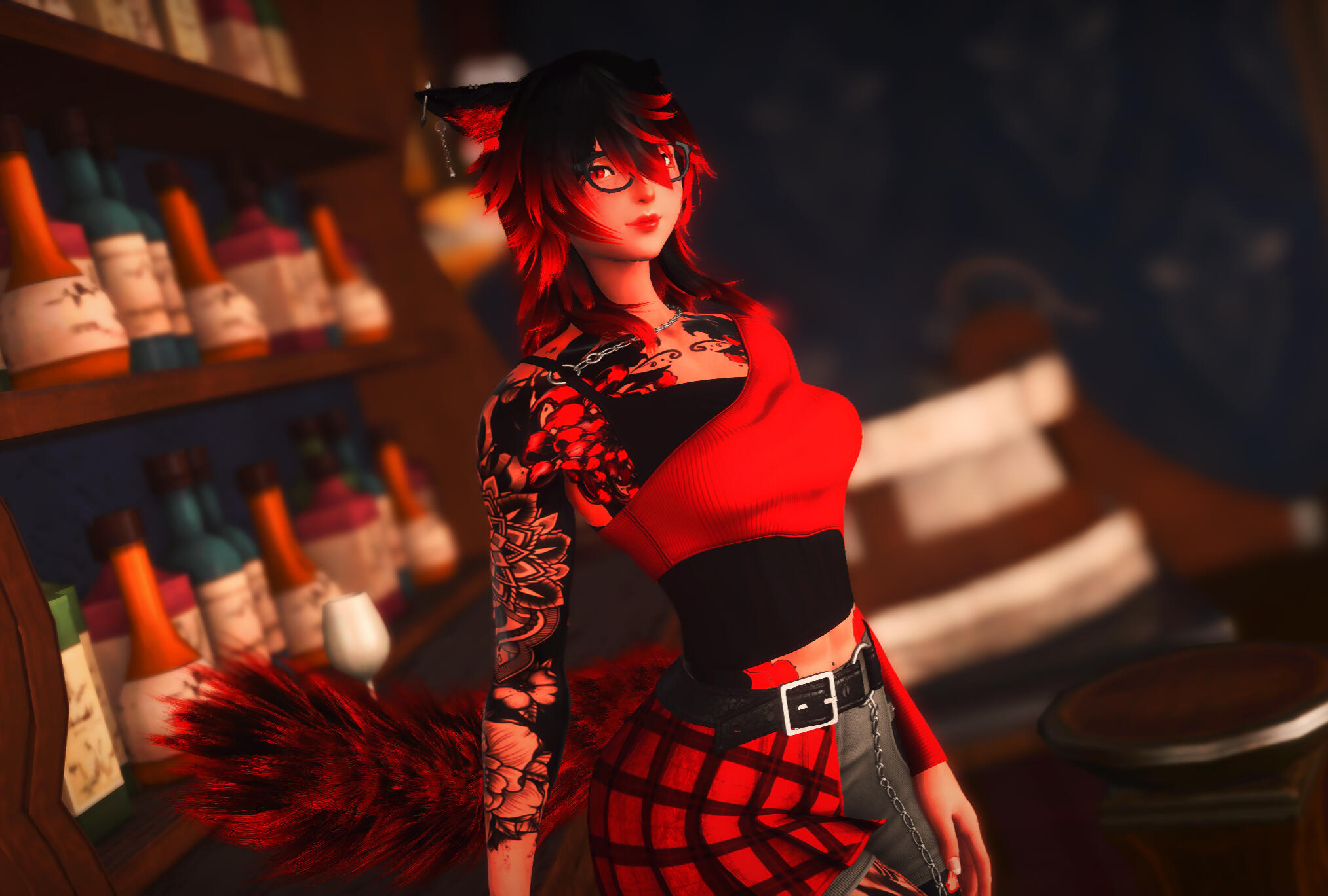 Instead of facing the problems she had caused, she sought out hiding. Speaking to known brothel owner and criminal Revi'a Katrha, seeking a way out of Kugane. She was offered a ride out in exchange she had to work as a courtesan in his lounge, she would subject herself over several days to torment to change her appearance, tattooing much of her body and changing her hair color. She would work hard every day the doors would open, serving each customer she could until she made enough funds to escape from Kugane. When the time was just right she would catch a ship landing her up in the Black Shroud where she would now call home.